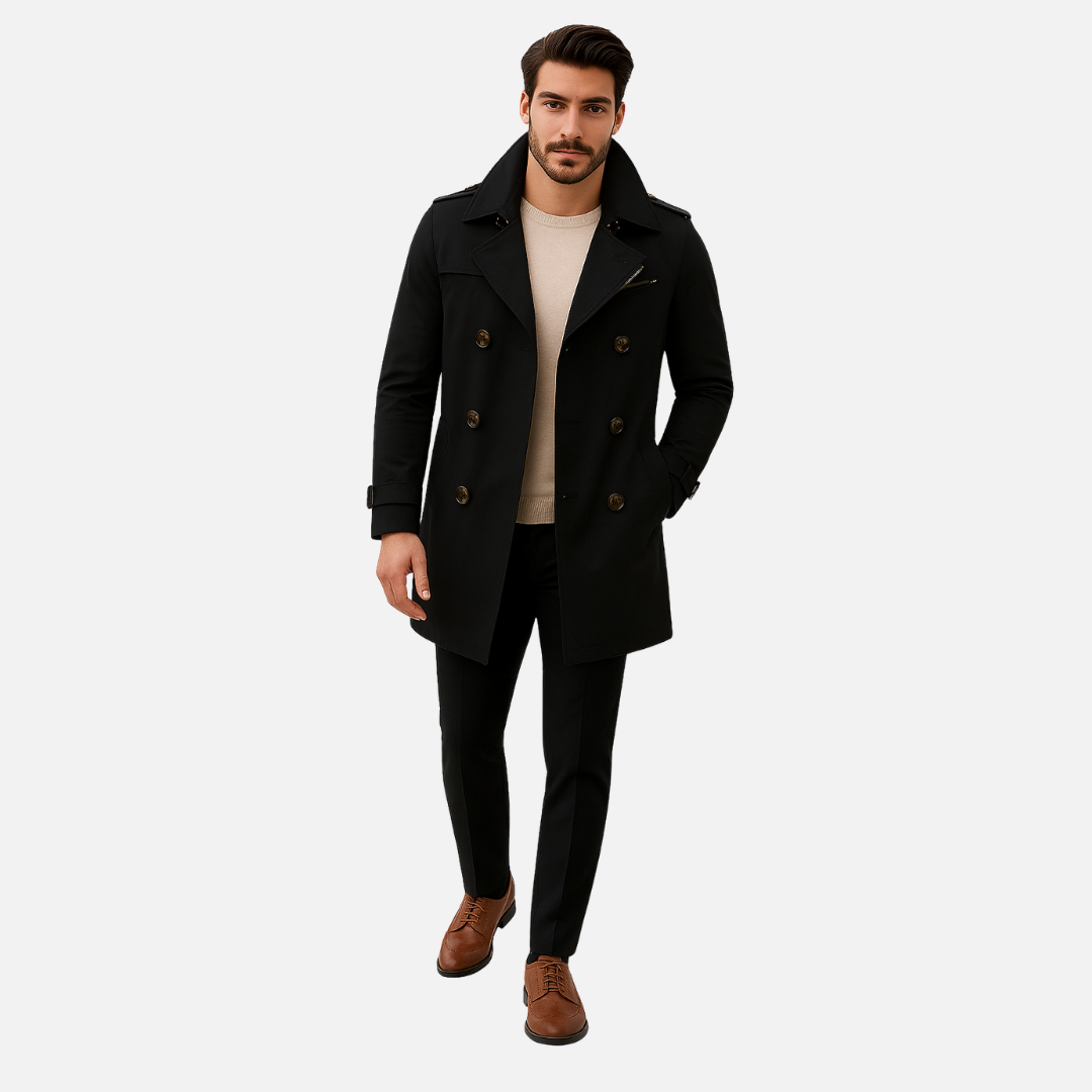 Men’s Long Trench Coat Jacket - Windproof Trench Coat