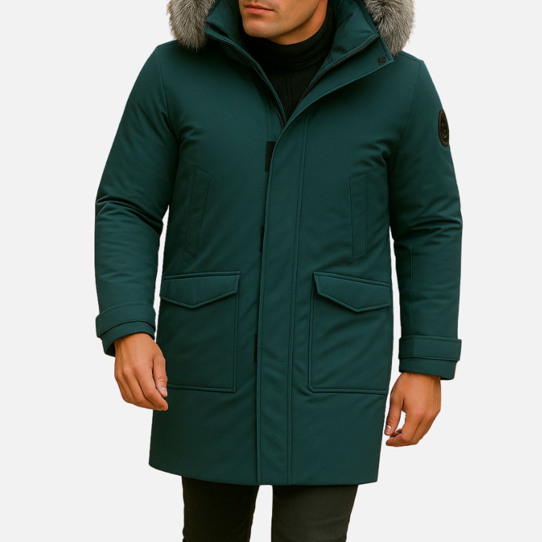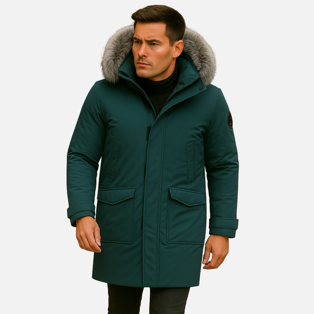 Men’s Winter Jacket with Hood and Faux Fur Collar – Warm Coat