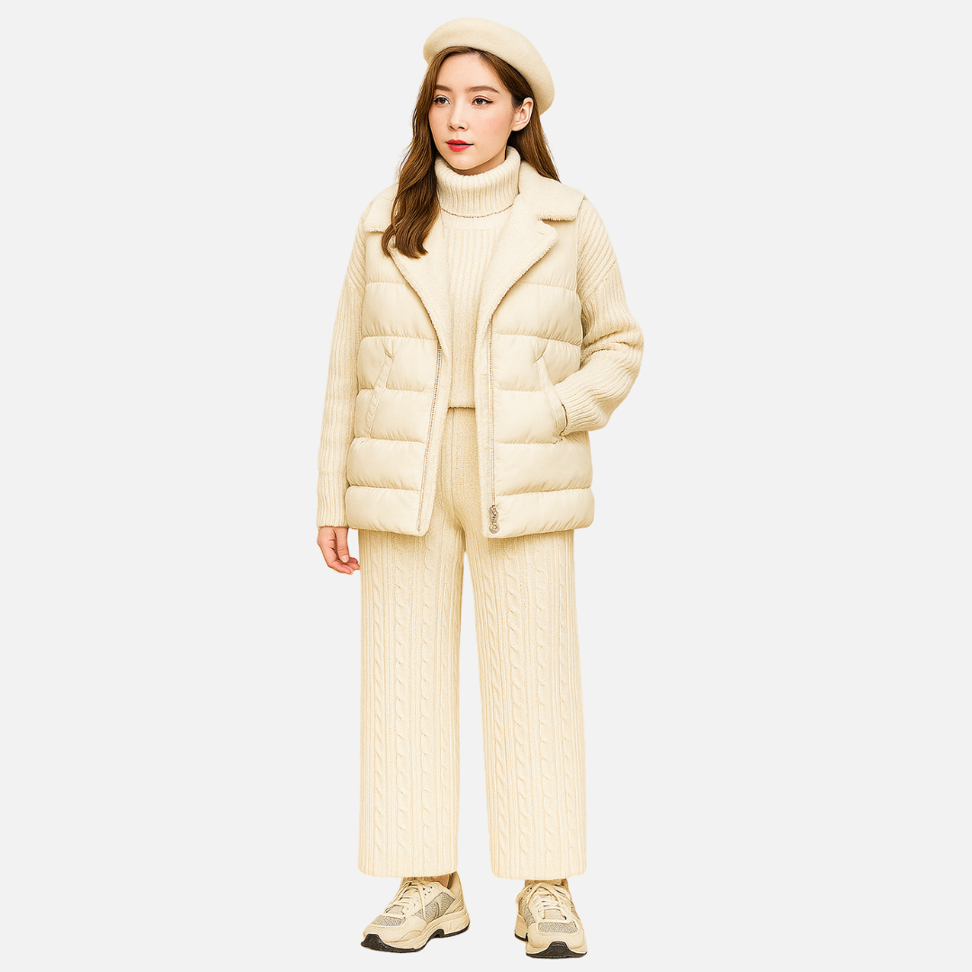 Women's 3-Pieces Outfit Set – Warm Matching Beige Outfit