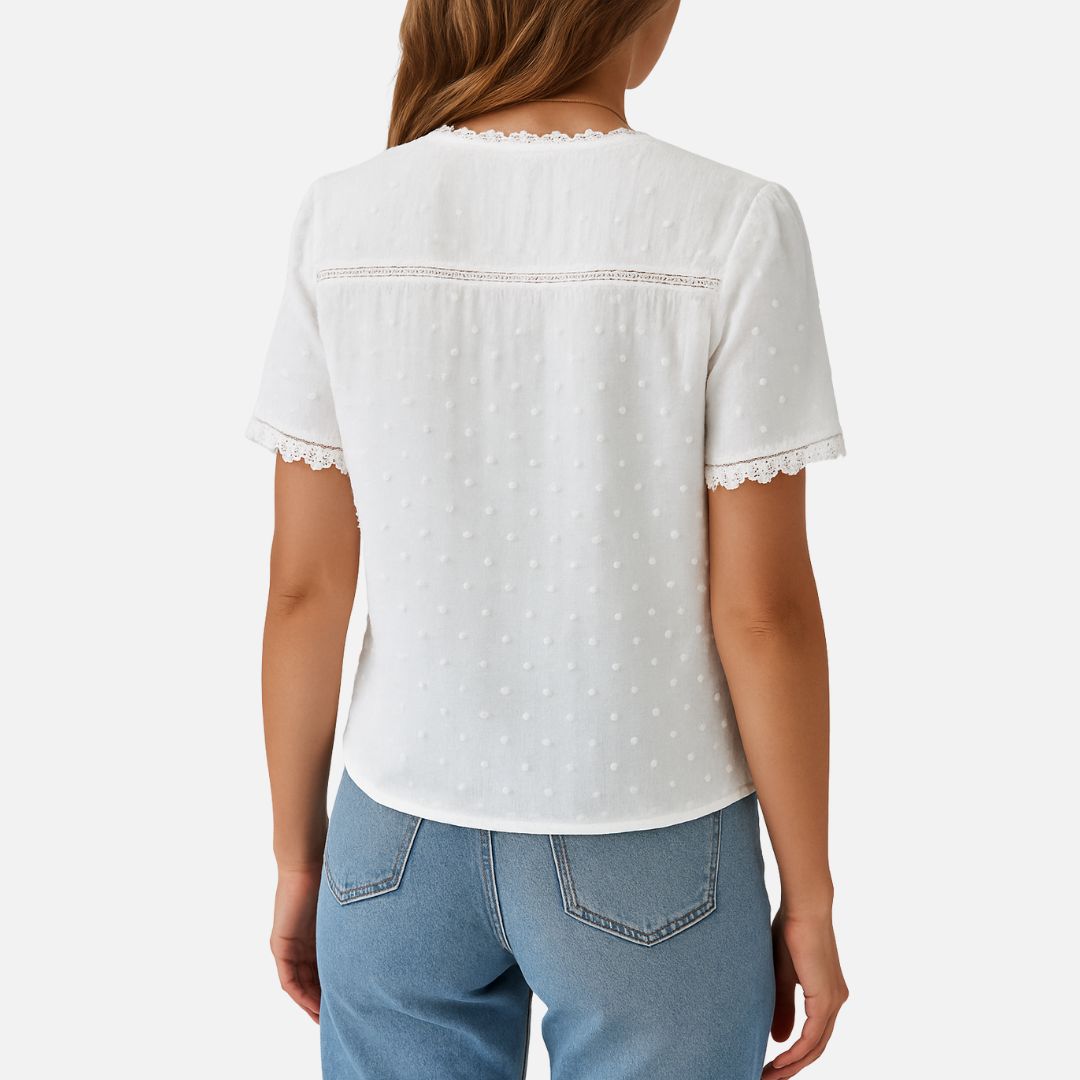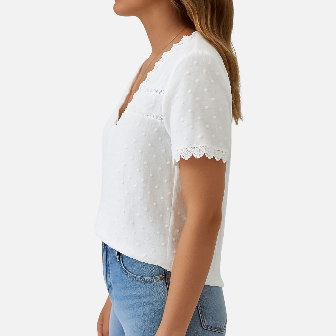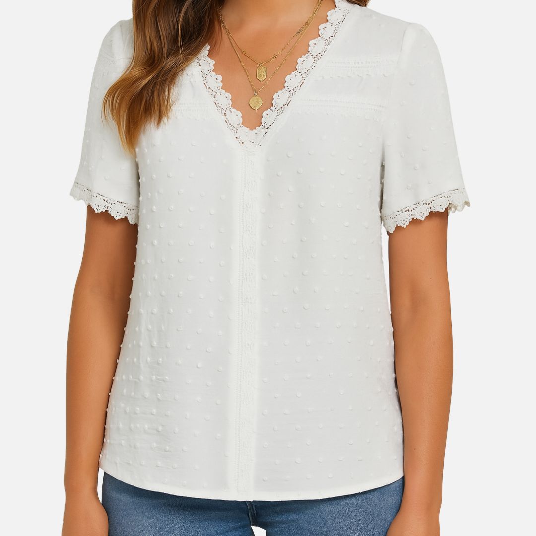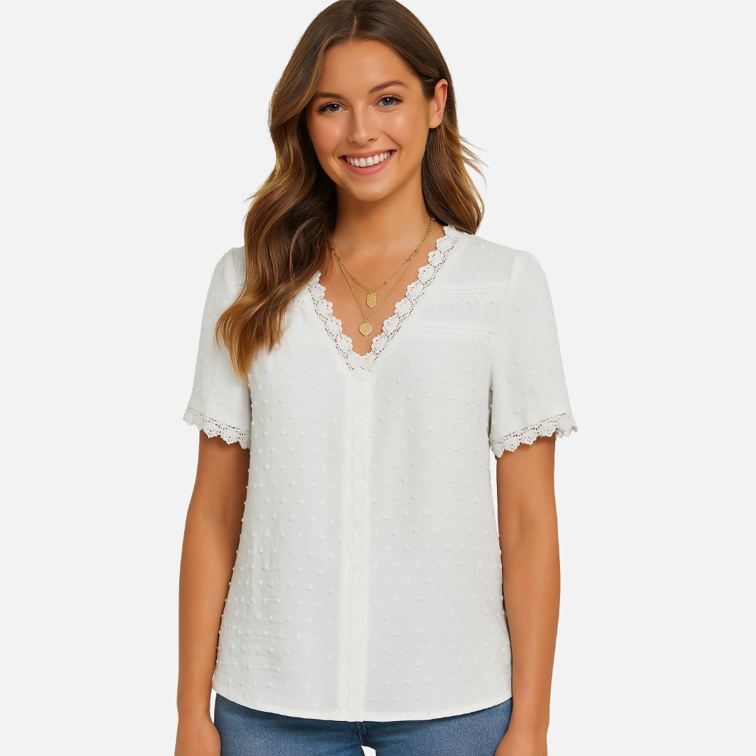Women's White V-Neck Summer Blouse - V-Neck Shirt